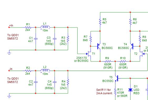 Kontrollisin selle võimenduse asja täpsemalt üle ja võimendus peaks olema siiski umbes R6/(2*R10), mis on 2,5 korda e. 8 dB kui R10 on 910 oomi, näppude peal panin mööda. Sisendis on ka pinge jagurid R1/R3 R2/R4 mis ka umbes 2,5 korda signaali maha jagavad.