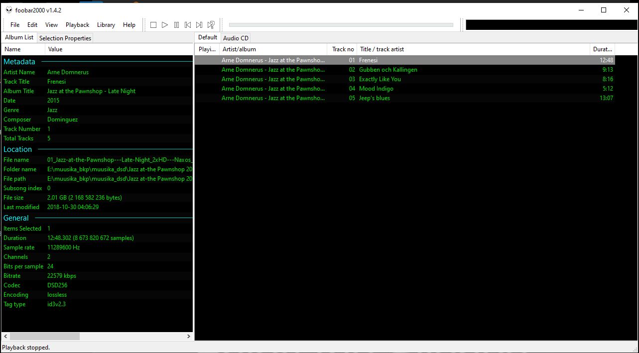 foobar2000 tahab dsd jaoks puginaid.