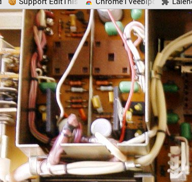 See mis pildil valge kaitsmetest allpool. Pane kõrgema pingega, kui originaal oli, see skeemi järgi trafo primaarmähisega paralleelsel olev häirete filtreerimiseks mõeldud kondensaator. Võib ka ilma selleta kasutada.