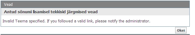"Antud sõnumi lisamisel tekkisid järgmised vead"