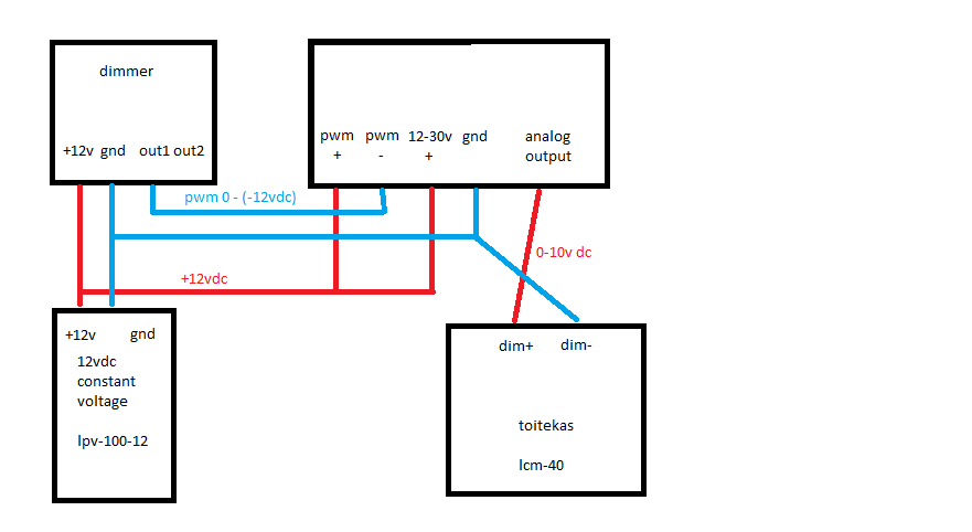 Probleem seisneb lihtsas valgustuse juhtimises, mille juhtijaks peaks olema, tavaline, harilik ledidele mõeldud 244Hz PWM ja selle PWM signaaliga oleks vaja juhtida toiteseadet millel on integreeritud dimmerdamise ahel takistuse põhine 0-100kohm.