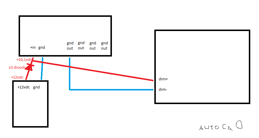 Toiteka ja ribadimmeri vahele ei pane dioode. Sellele jookseb 12VDC ilusti peale.