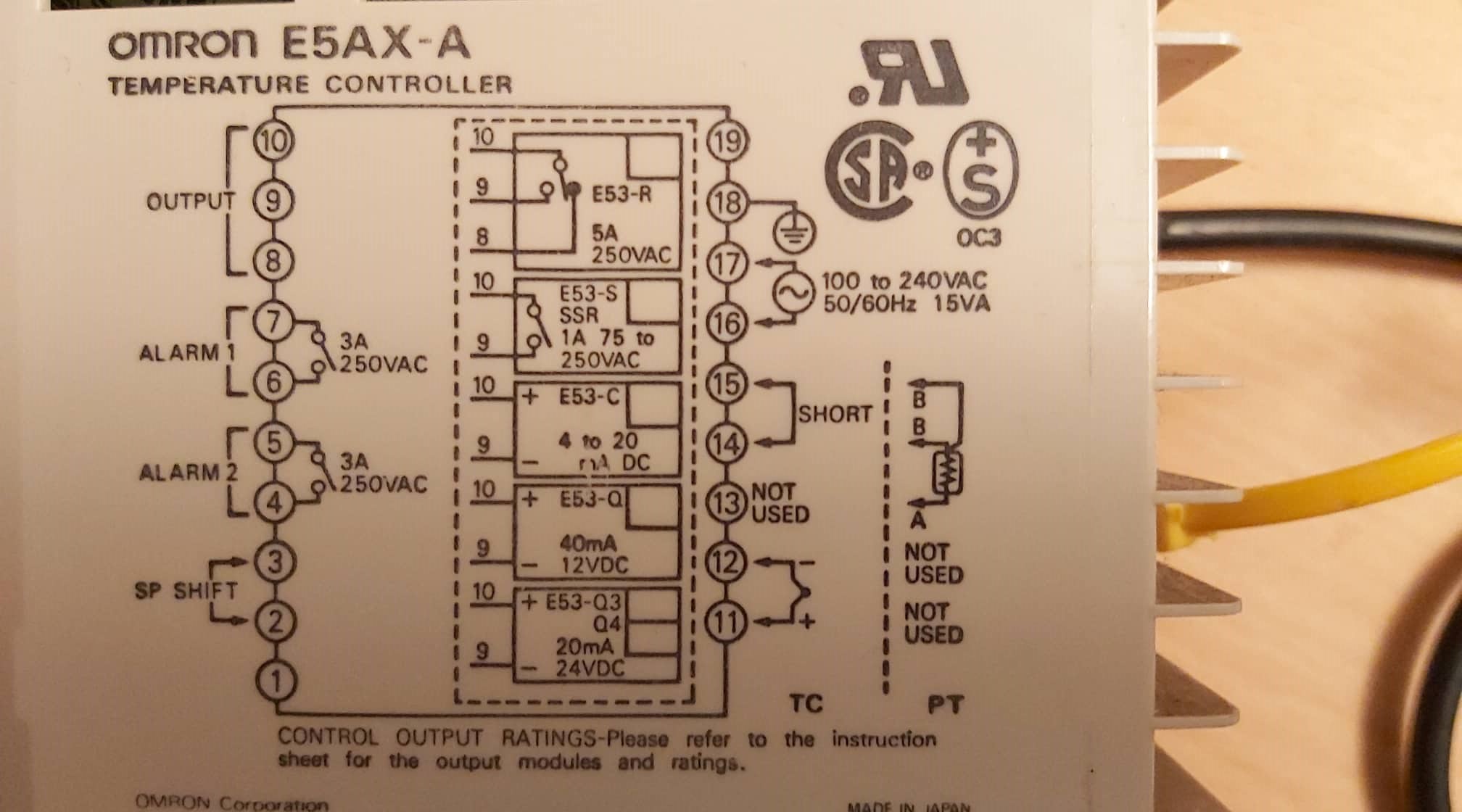 Karastusahjul kahjuks andis saba vana veneaegne temperatuurikontroller. Aastaid tagasi sai kalli raha eest soetatud Omron (E5AX-A) temperatuurikontroller, kuid siiamaani seisis see kapis ning nüüd otsustasin asja uurima hakata.