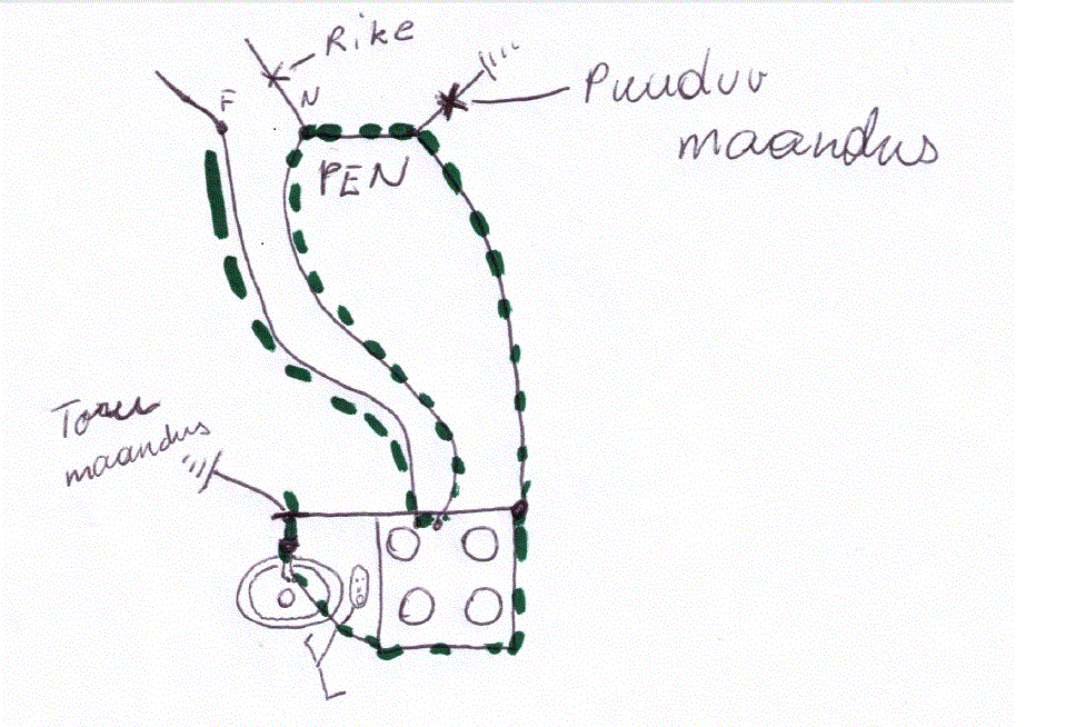 No võta tester või kui hea tervis siis näpud ja tekita rikke olukord, kus sul maandust ei ole kilbis tehtud ja mingil põhjusel kaob N (ühenda see el kilbist lahti) Ja nüüd käi ja lülita pliite ja pesumasinaid katsu kraani samal ajal ja nii edasi. Loodame, et näpuga proovides see taevas appi ka tuleb. Panin igaksjuhuks pildi ka et sa surma ei saaks kui tekib tahtmine näpuga proovima minna