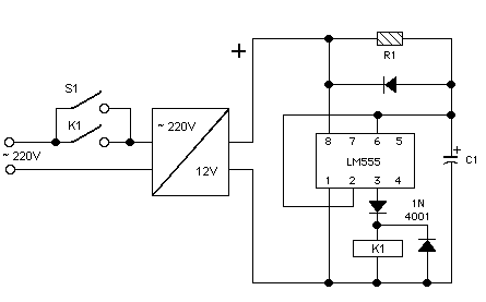 relee ühendav kontakt paralleelselt nupuga, mis andis võrgutoite kogu süsteemile: