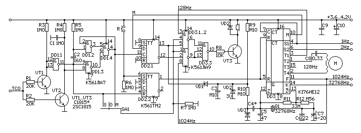 selline skeem (kvartsgeneraatori skeemina kella "Весна" vabriku originaal):