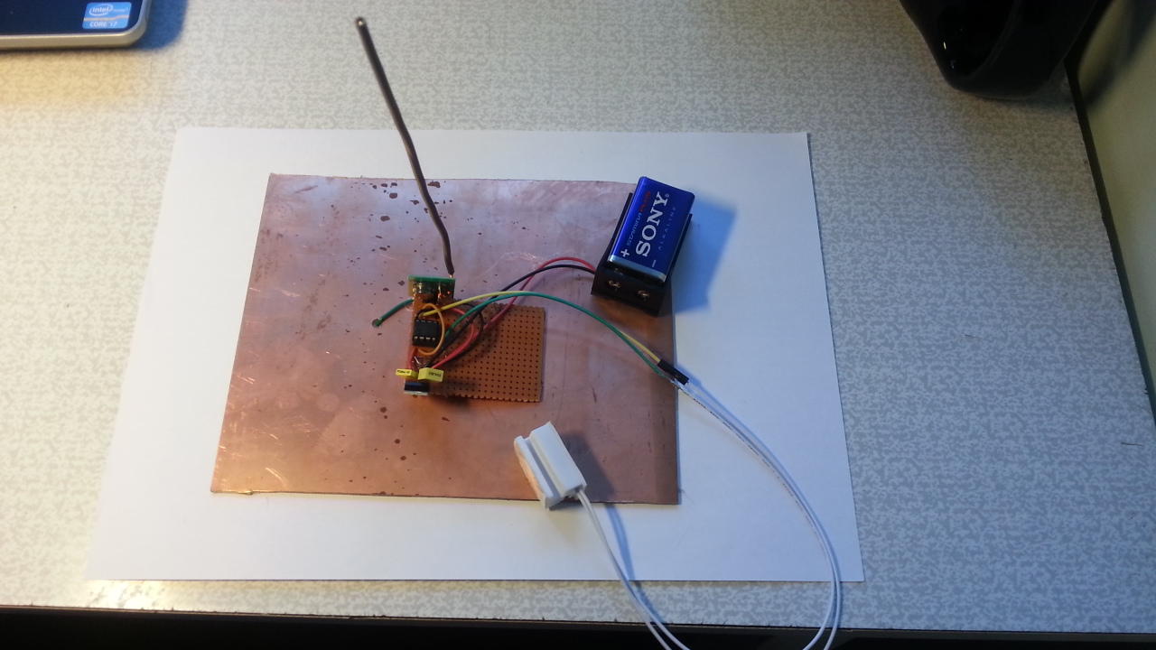Linnas sain signaali ulatust 30m läbi mitme palkseina. Antenn oli algul veerandlainepikkuse oma koos kunstliku maa tasandiga. Paari tellisseina lisandumisel aga vandus see alla, nii et tegin saatjale ja vastuvõtjale poollainepikkuse dipooli (otste vahe 328mm) koos balun-iga (228mm rg 58 koaksiaalkaablist keeratud balun), siis töötas jälle. Sellest võin ehk tulevikus pildi-kaks üles panna.