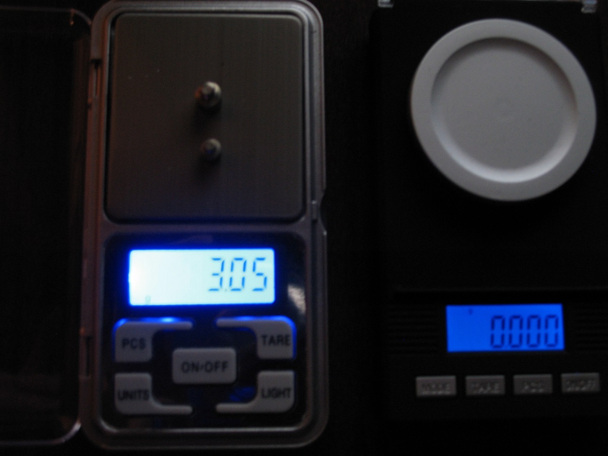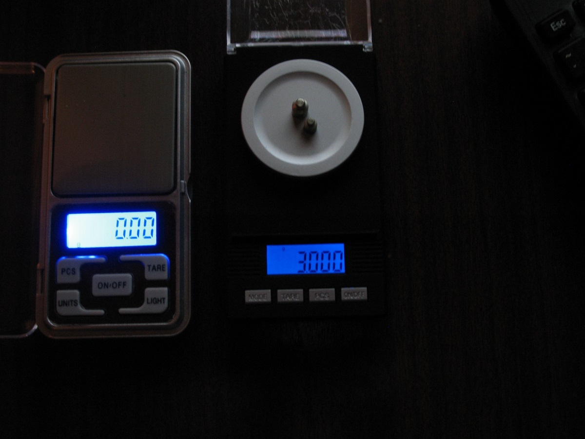 Õnnestus apteekriga kaubale saada ja mõõtis mulle paar väikest vihti üle, 1g ja 2g ning nende 4 komajärgse koha määramise võimekusega ütles, et ka 4.-number jäi "0" ehk siis hiina "taskukaal" mõõdab üllatavalt täpselt, 10 erinevas järjestuses kaalumist, 1 ja 2 vihiga, suvalises järjestuses, igal korral "settib" tulemus 3-5 sekundi jooksul selle 3 koha mõõtmise väärtusele (vihid kontrollitud siis 4 kohalisel analüütilisel kaalul, tulemused 1,0000 ja 2,0000)